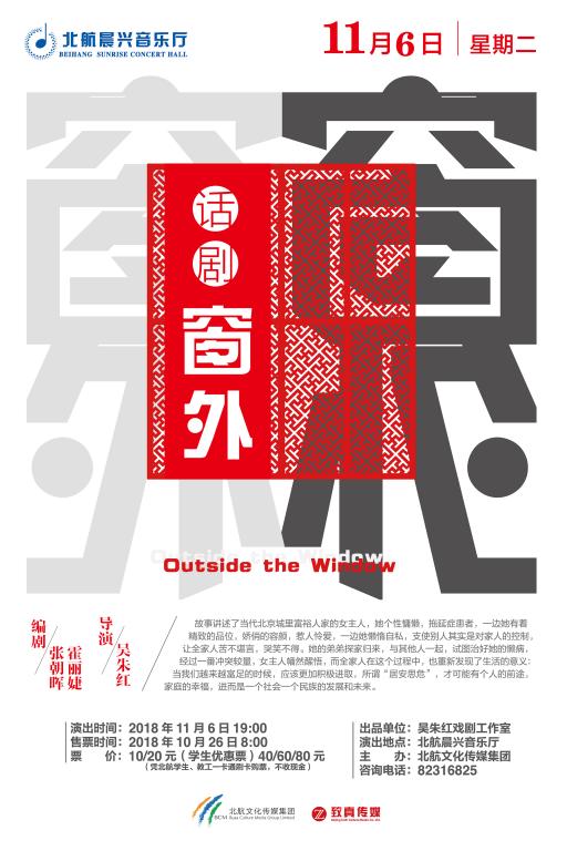《窗外》作為吳朱紅戲劇工作室年度新戲,集結優秀主創團隊,堅持品質追求,繼續投身原創,入選2018年北京東城原創新劇目。