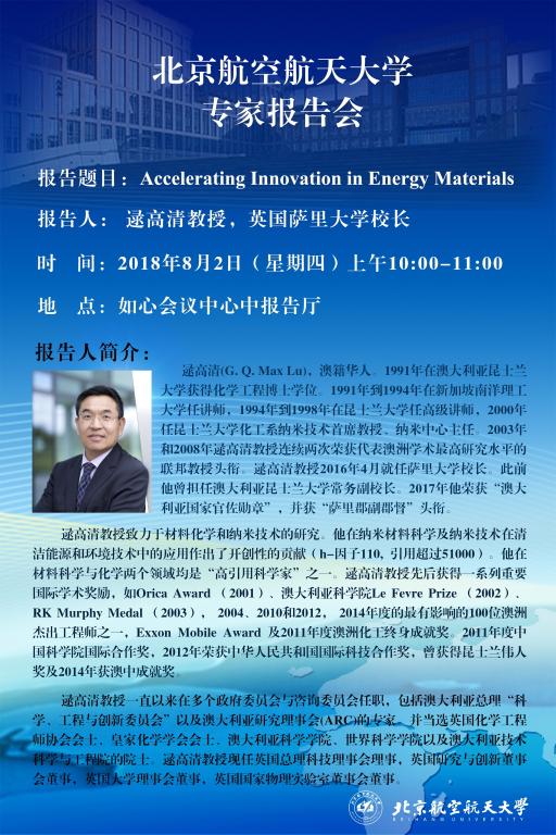 逯高清教授一直在多個政府委員會與咨詢委員會任職,包括澳大利亞總理“科學、工程與創新委員會”以及澳大利亞研究理事會(ARC)的專家,并當選英國化學工程師協會會士、皇家化學學會會士、澳大利亞科學學院、世界科學學院以及澳大利亞技術科學與工程院院士。逯高清教授現任英國總理科技理事會理事、英國研究與創新董事會董事、英國大學理事會董事、英國國家物理實驗室董事會董事。