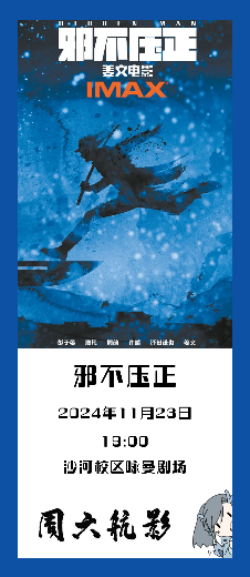 11月23日(周六)19:00,學院路校區學術交流廳、沙河校區詠曼劇場同步放映!