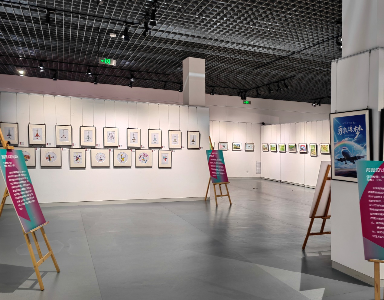 本次聯(lián)展以“星夢(mèng)高遠(yuǎn),美潤(rùn)啟航”為主題,包括《海報(bào)設(shè)計(jì)與制作》《攝影藝術(shù)鑒賞與基礎(chǔ)》《透視與空間》《電影鑒賞與分析》《中國(guó)美術(shù)史》《轉(zhuǎn)描動(dòng)畫技法》《西方美術(shù)與觀念》《空天產(chǎn)品美學(xué)設(shè)計(jì)》《水彩畫技法》等課程,包含繪畫、海報(bào)、影像等類型作品,集中展示了二百余名學(xué)生的創(chuàng)作作品。