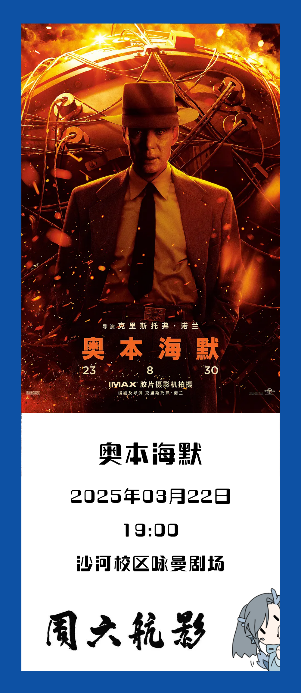 「周六航影」第四周,讓我們一起走進《奧本海默》,在獨特的非線性敘事與細膩的表演中,重見史詩般的瞬間,看見科學家的狂熱與脆弱、傲慢與懺悔,體會歷史的厚重和人性的復雜。