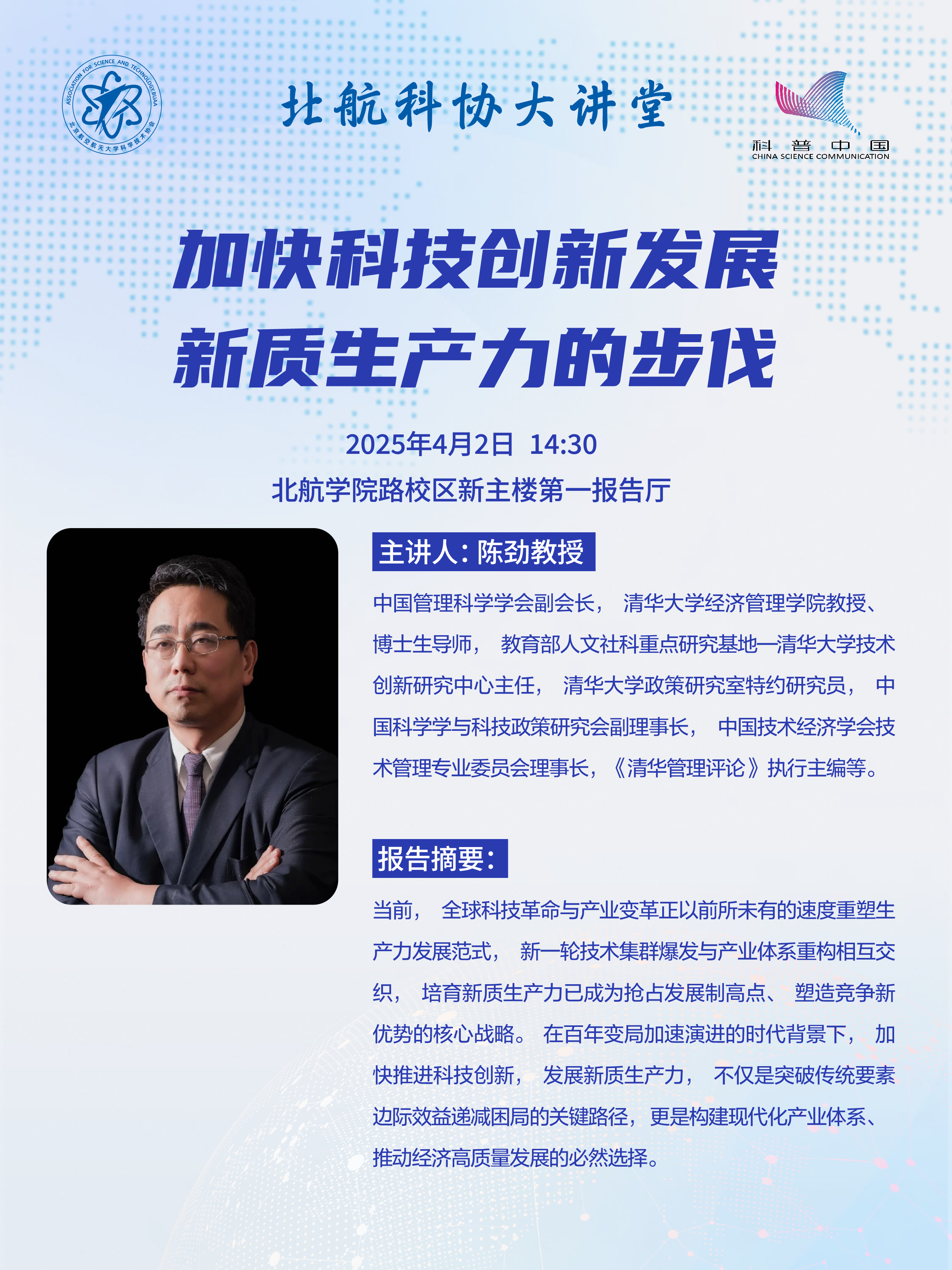 報告地點:北航學院路校區新主樓第一報告廳