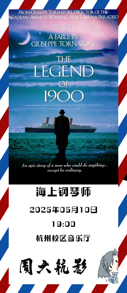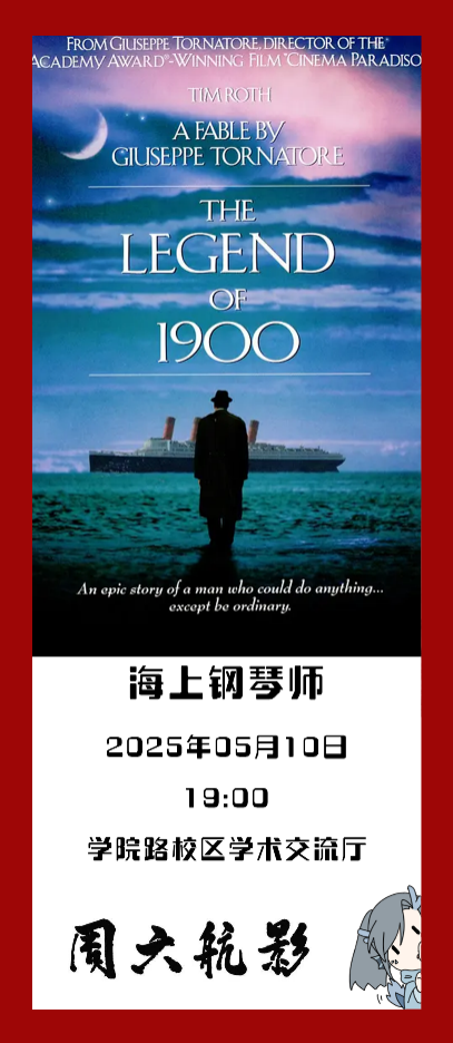 樂章不朽,傳說永恒,本周「周六航影」,讓我們一起走進(jìn)《海上鋼琴師》。跟隨電影詩意的鏡頭語言,讀懂現(xiàn)代人最深層的生存焦慮,超越一部僅僅關(guān)于音樂電影的認(rèn)識(shí),聆聽一曲關(guān)于存在本質(zhì)的哲學(xué)沉思。