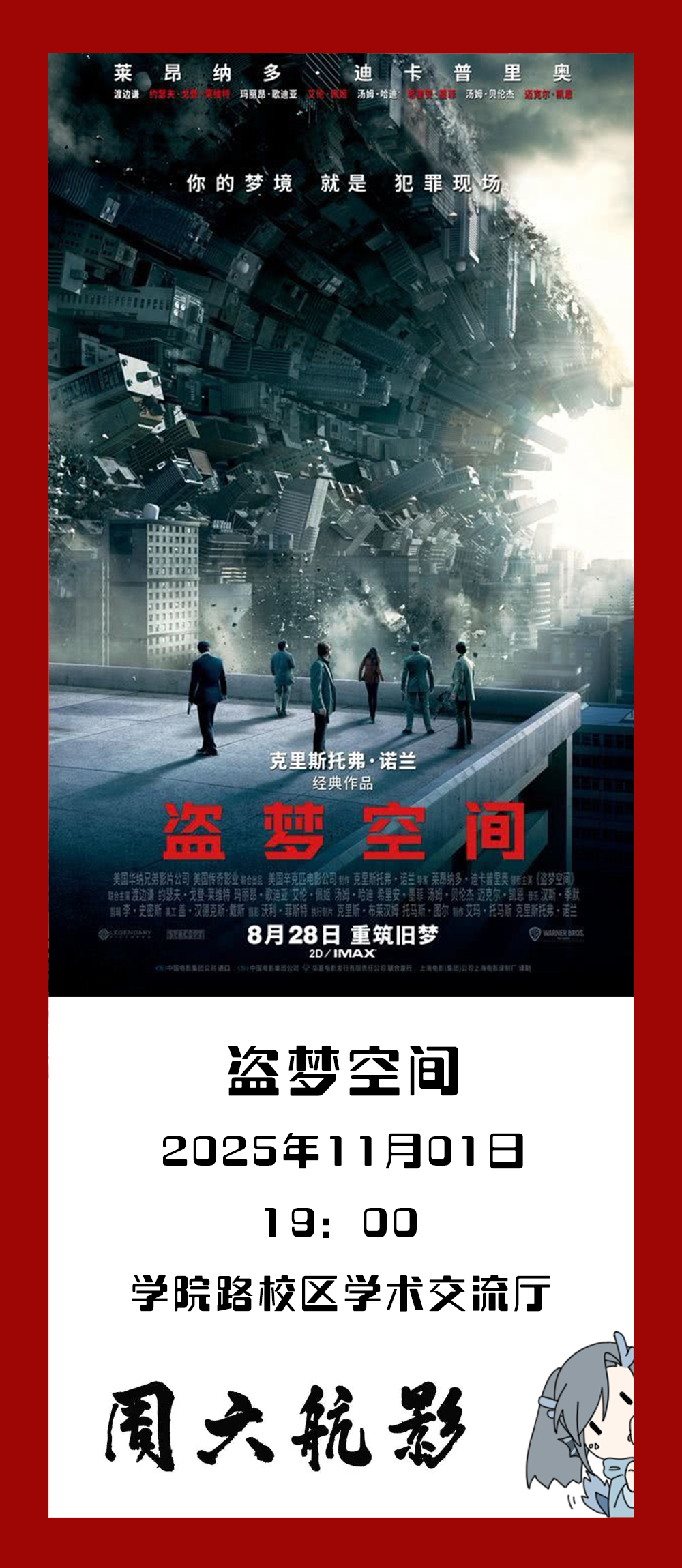 本周讓我們一起走進《盜夢空間》,在層疊夢境的迷宮中,拆解多層時空的敘事密碼,從潛意識的暗流里,讀懂罪疚與放下的生命寓言,在科幻與哲學的碰撞中,追問現實與選擇的終極意義。
