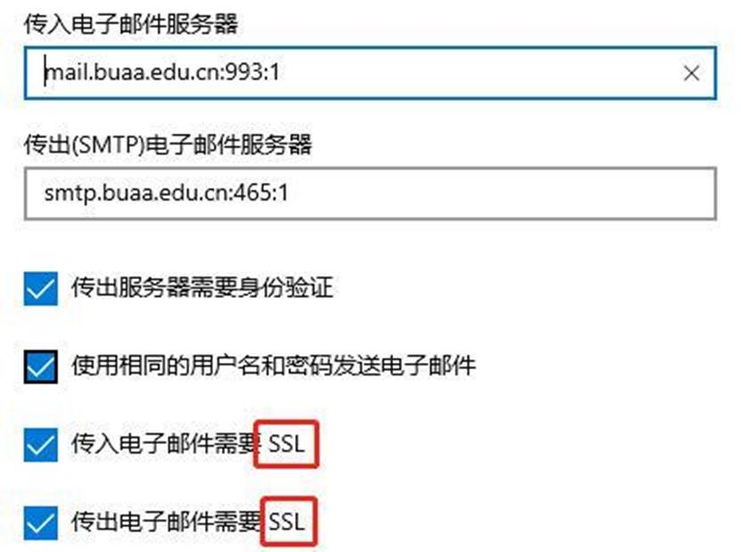 5.如使用郵箱客戶端(如Outlook和Foxmail等),需使用加密連接方式。可在“帳戶設(shè)置”中進(jìn)行如下勾選: