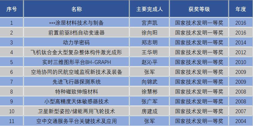 圖:近年來北航榮獲國家技術發明一等獎一覽