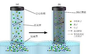 許億博士的研究,目前已進(jìn)展至能夠利用EGD-PIII&D技術(shù),在內(nèi)徑細(xì)至0.8mm、長(zhǎng)超過(guò)100mm的石英毛細(xì)管的內(nèi)壁沉積了DLC薄膜,并將該技術(shù)拓展至螺旋管、C形管等異形管內(nèi)壁薄膜的沉積。此外,許億博士針對(duì)管內(nèi)壁DLC薄膜沉積過(guò)程中初始階段注入電流快速增長(zhǎng)的現(xiàn)象,研究了管內(nèi)壁材料對(duì)等離子體放電的影響,揭示了自增強(qiáng)等離子體放電效應(yīng),又對(duì)管內(nèi)壁涂層不均勻的問(wèn)題設(shè)計(jì)了多項(xiàng)試驗(yàn),最終掌握了管內(nèi)壁DLC薄膜沉積過(guò)程中氣體流量和電壓大小對(duì)薄膜均勻性的影響規(guī)律。
