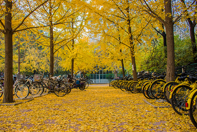 踩上小黃車(chē),享受著穿梭在銀杏樹(shù)里那份急速馳騁的自由。